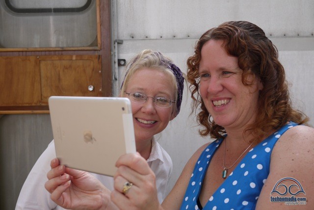 Basically we were like a broken record repeating our introduction and story over and over and over again. There was no way one of us could break free to go touring the other trailers, as it took us both to manage the crowds. One of us stood outside and told the basic story of the bus while waiting for there to be room inside – while the other was inside giving a tour. Rinse, Repeat.