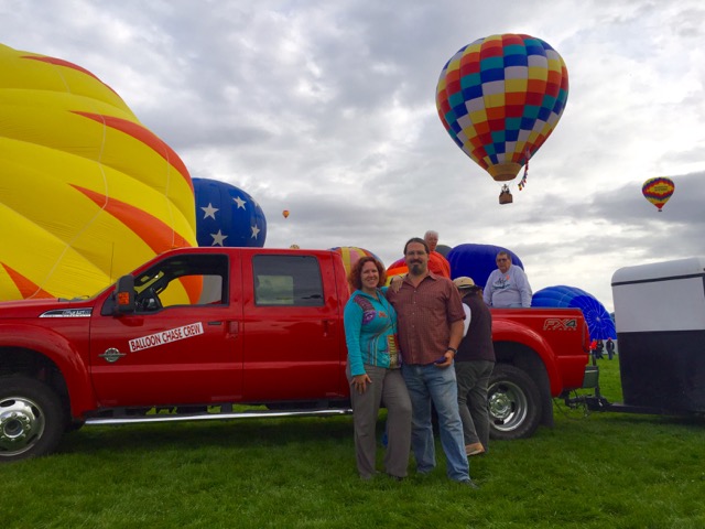 It was a pleasure to have you join Thursday’s Child chase crew at Fiesta this year. I managed to fly all the chase crew that were willing to fly, and the Boomers rally folks certainly added to the enthusiasm. If you see a balloon flying anywhere, chase it and tell them you’ve chased and flown at Albuquerque – you’ll win points! Best regards, Fred and Christel Dinkler, Canyon Lake, TX