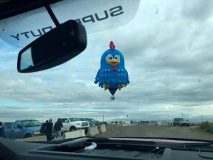As soon as pilot and ballast had left the field, the rest of the team got in the chase truck and played the game of ‘find the balloon’ navigating around traffic-jammed Albuquerque.