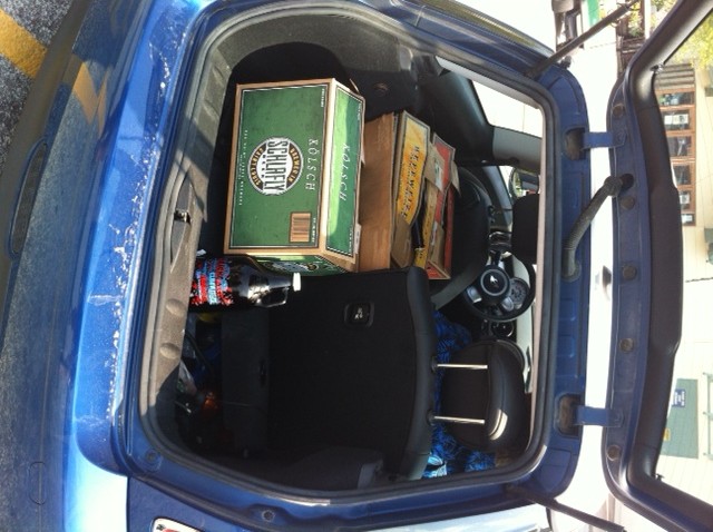 Filling our MINI up with free beer!! (Darn, we should have brought the bus!!) Invite us over… we have lots of fantastic beer to share!!