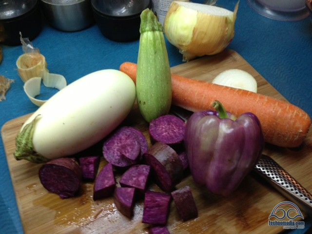 Like, did you know that traditional eggplants are white? I mean, duh – that’s how they got their name. They really look like eggs! And they are super delicious. The other evening I made an amazing vegan masaman curry with white eggplant and purple yams, and it felt like opposite color day!