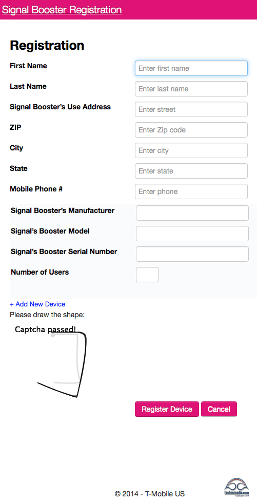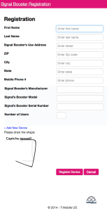 T-Mobile Booster Registration Page