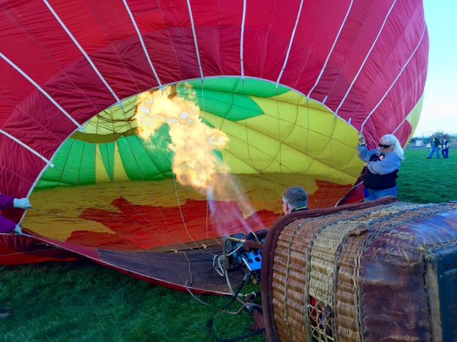 Every morning before sunrise starts with the Dawn Patrol. About 10 balloons are selected to do a morning glow (a glow is when the balloon inflates, and they have special burners that light up the envelop of the balloon – it’s stunningly beautiful).