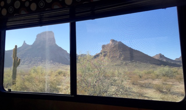 We’re currently parked in a wonderful boondocking location outside Phoenix at Saddle Mountain with our buddy Becky. We have gorgeous mountains surrounding us as our view.