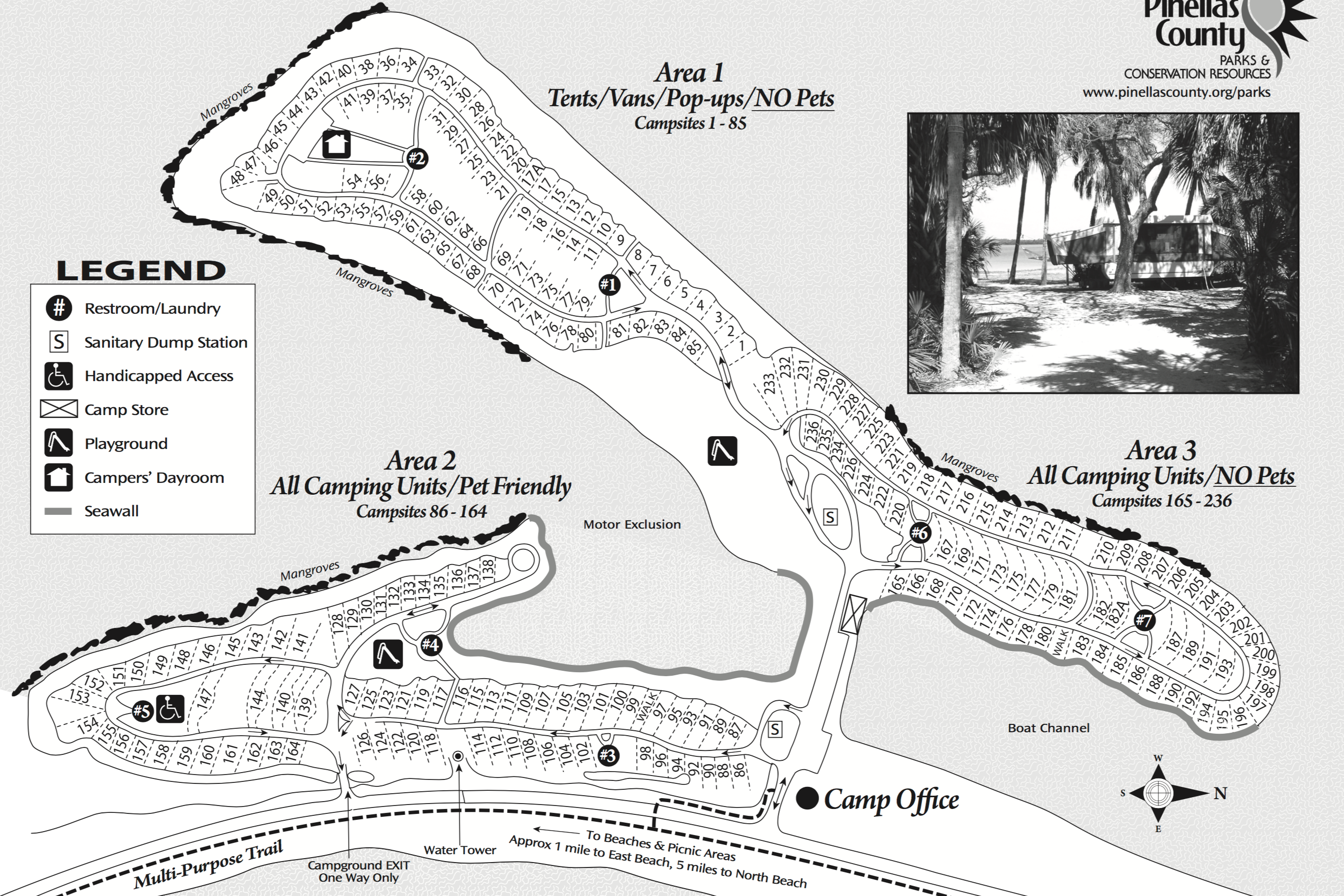 To add to the challenge, there are 3 camping loops. One is reserved for tents & van sized RVs (no pets allowed), one for RVs of any size (but no pets allowed) and one for RVs of any size but allowing pets.