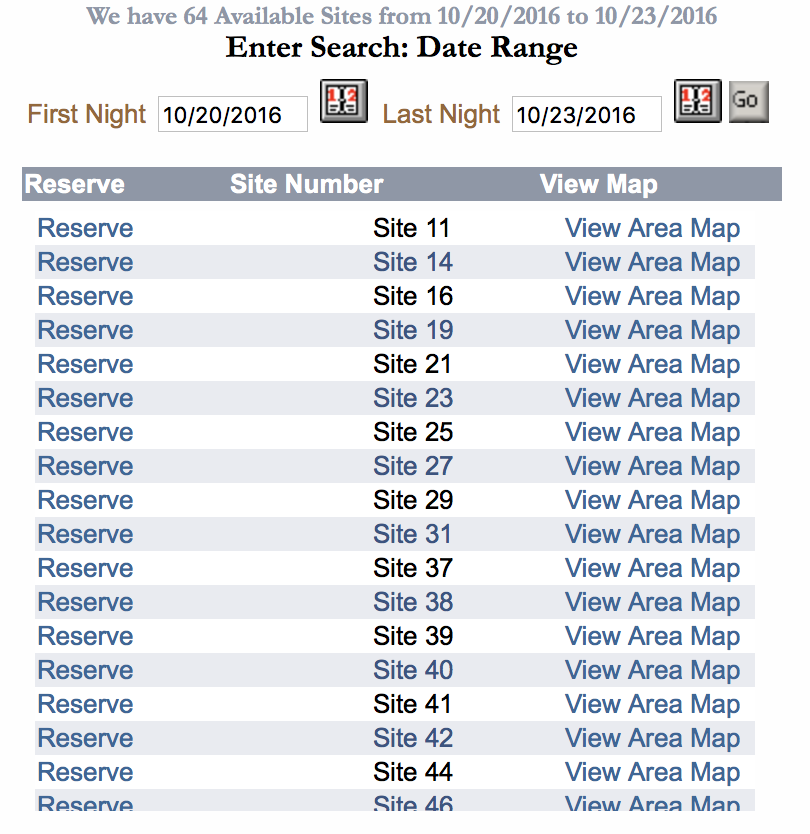 - By the time you click the ‘Book’ button, more than likely the site has already been snagged out from underneath you. (In my humble former software user interface designer opinion, once you select a date range and click a link that says ‘Reserve’ it should hold it for a couple minutes – otherwise, it should say ‘More Info’.)