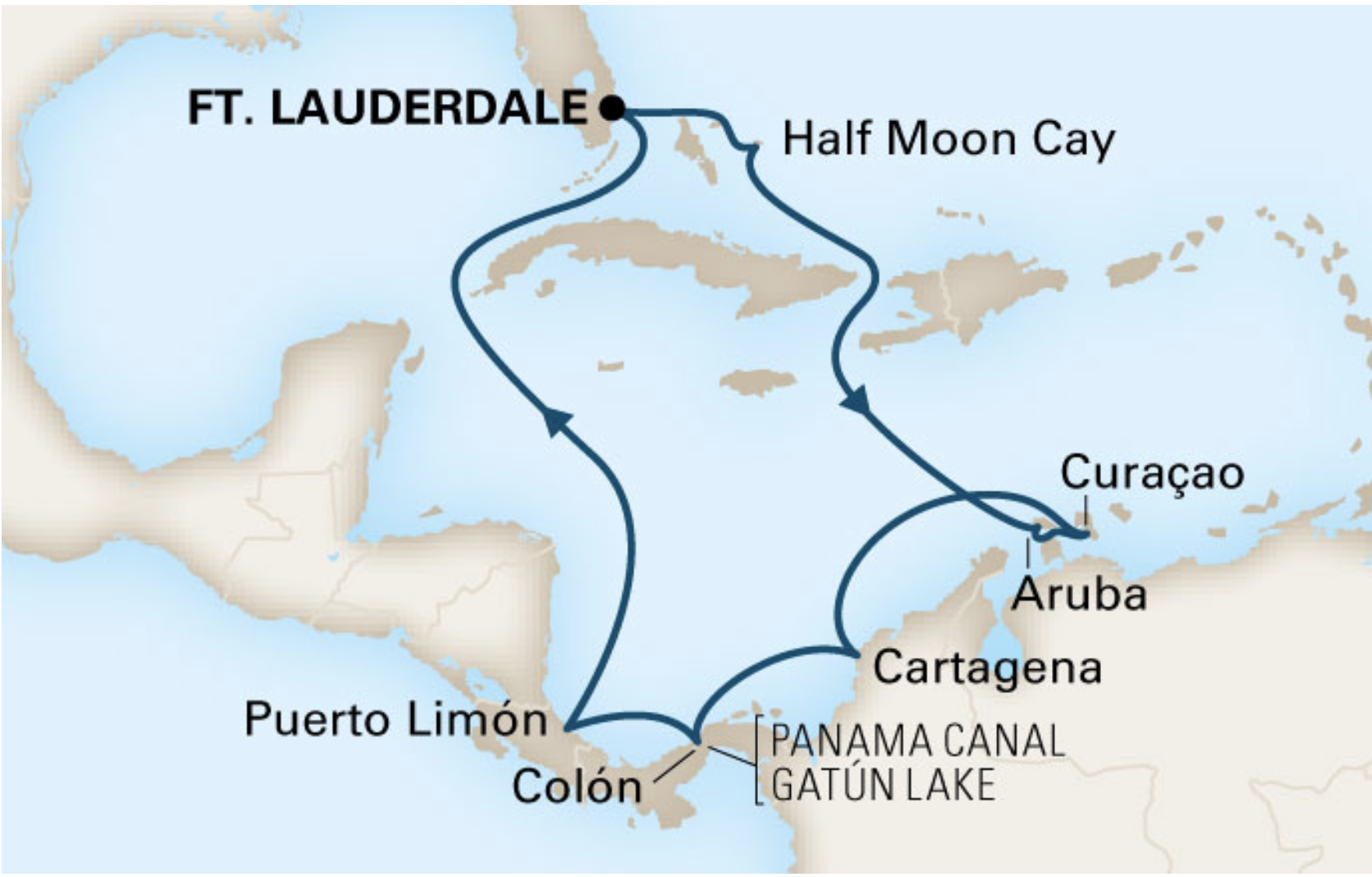 We selected the 11-day ‘Sun Farer’ itinerary which included stops at Half Moon Cay (Bahamas), Aruba, Curacao, Colombia and Costa Rica – as well as a day going in & out of the Gatun Locks of the Panama Canal. And, our favorite, four days at sea.
