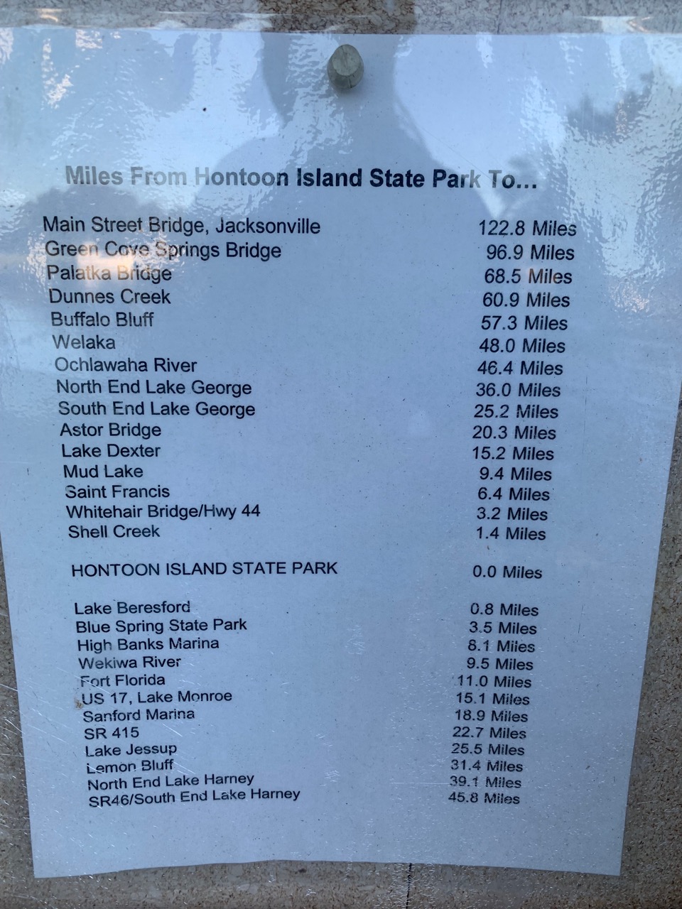 Hontoon Island Mileage