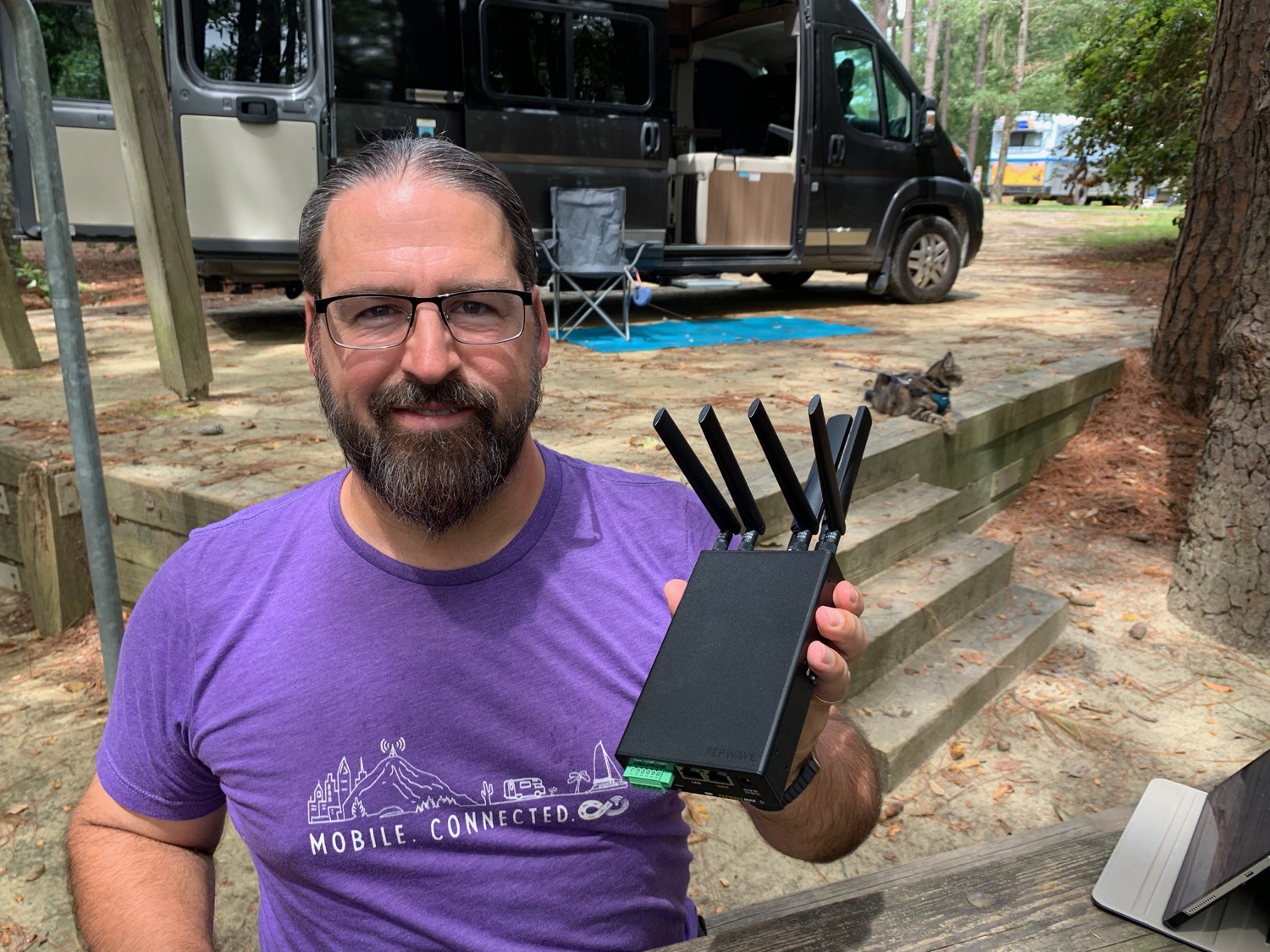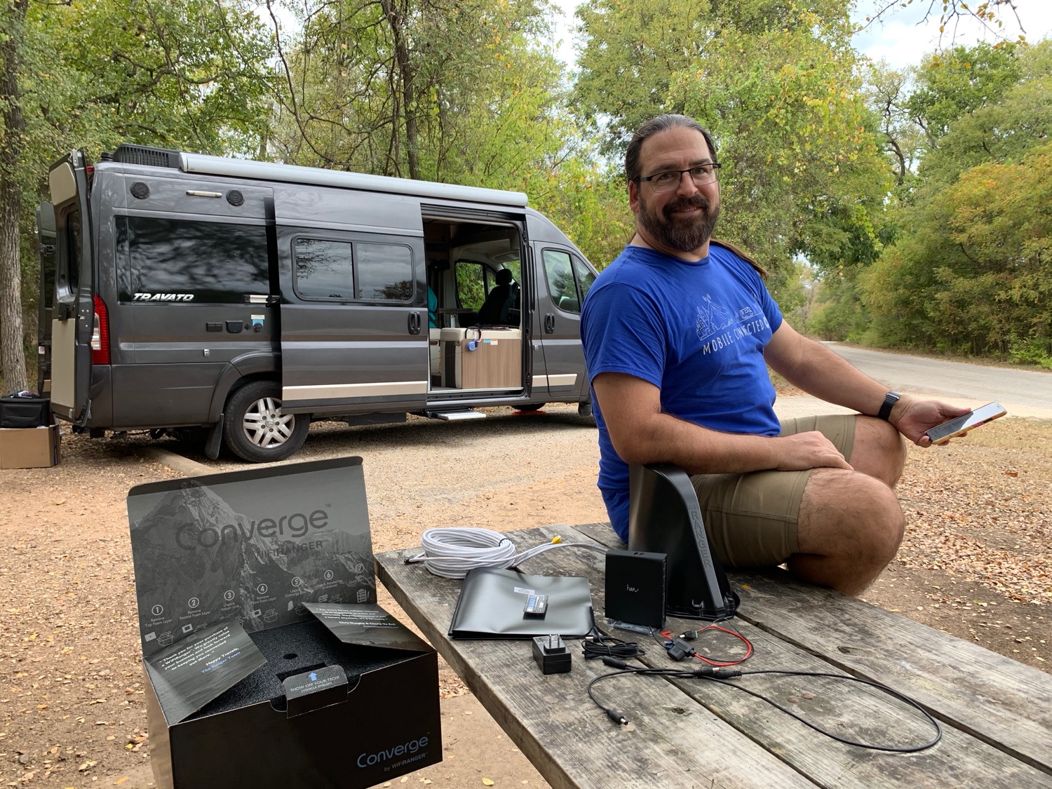 We had been just using mobile hotspots from Verizon and AT&T with portable MIMO antennas as our mobile internet solution in the van. It’s a super simple approach that we guide a lot of folks towards.