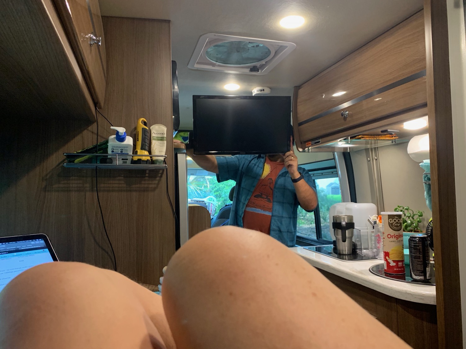 We still have the original TV on the boat – and will reinstall it on the van for trips during our boating season.