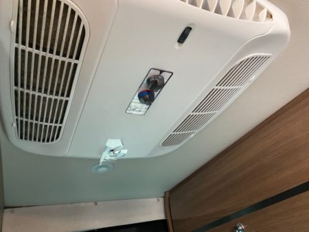 • Bad Airflow – The AC location in the rear right above the bed leads to uncomfortable airflow at night with cold air blowing right in your face while you are sleeping, and poor airflow during the day while you are up front. Half of the airflow vents are directed towards the back door, and wasted. Meanwhile – hardly any air reaches the front dinette.