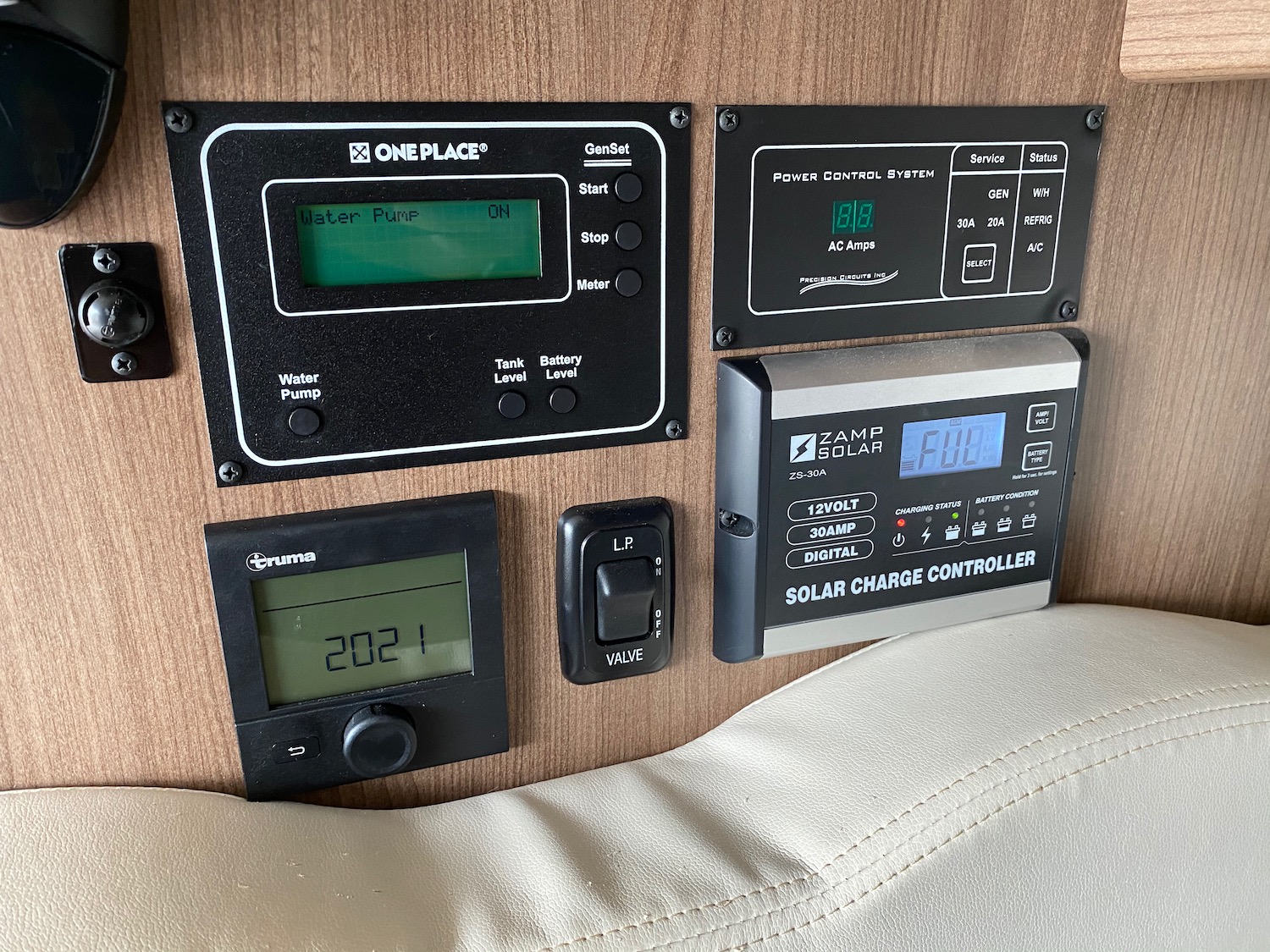 Ridiculous Control Panel / Big Ugly Zamp – There is no reason that a huge chunk of prime wall space should be wasted for any ugly cluster of non-integrated control panels. In particular – the big ugly “Zamp” solar controller is mostly useless, and looks way out of place. Ideally everything should be integrated into a single system dashboard. Winnebago’s ”One Place” should live up to its name.
