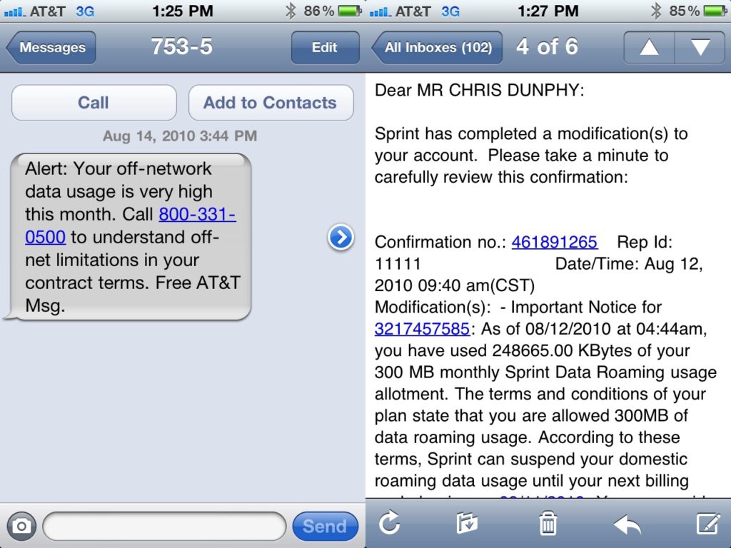 Until after just a few hours Sprint cut off our primary data plan for “excessive roaming”. And an hour later, AT&T did the same to our secondary plans.