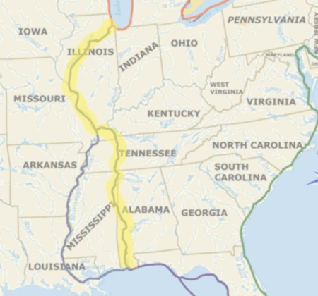 “The Tennessee River is one of the only three rivers on the clockwise loop that are flowing with me excluding the Erie Canal, which didn’t have any noticeable current. All other waterways are either tidal, flat water or against the current. My total river miles with the current will be approximately 450 miles, which is only 9% of the 5,000 mile canoe trek.”