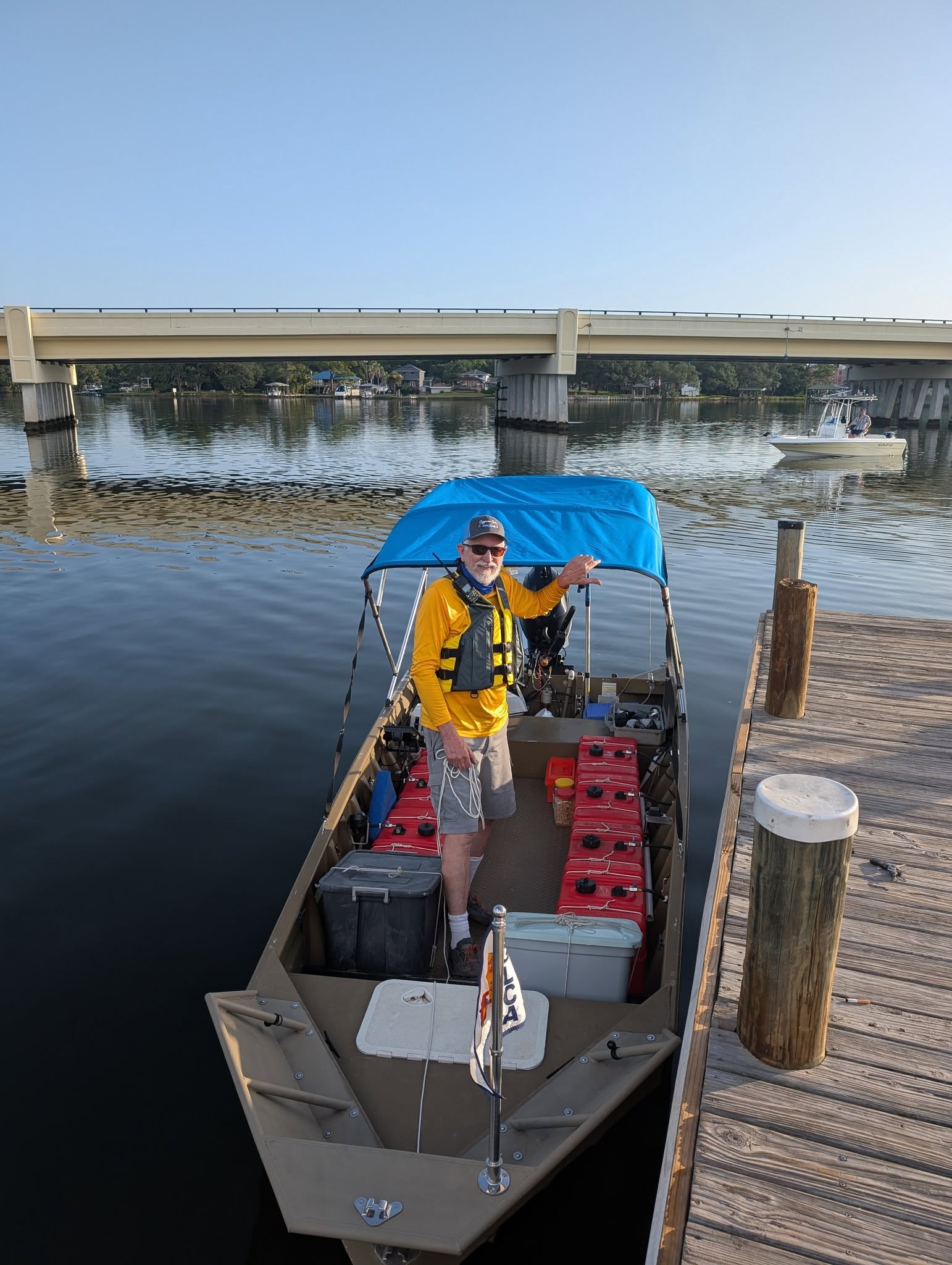 In a ridiculously small jon boat.