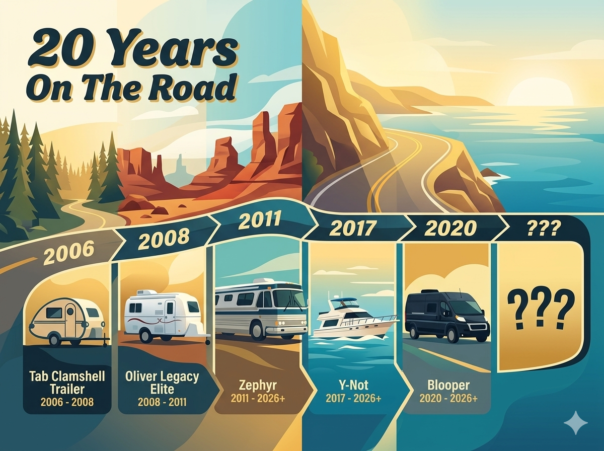 Some of our fondest nomadic memories were our hop-scotching convoys with Nina & Paul of WheelingIt, one of the true OG RV bloggers: